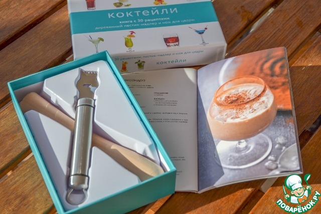 Еще Елена подарила мне шикарнейший набор для коктейлей и книгу с их рецептами! Надо сказать, что нам с двоюродной сестрой очень нравится устраивать всякие летние посиделки и готовить разные коктейли! А для детей в книге есть множество безалкогольных вариантов!