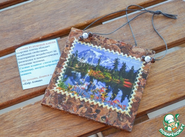 Вот такая обалденная кедровая плитка с видом Алтая! Обожаю такие вещи! Уже нашла свое место у меня на кухне! Красота!
