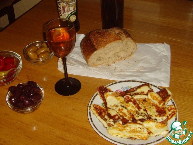 ), проснувшись, сразу в обед, побежал на рынок "Берёзка" на лоток "Другого хлеба". Быстренько, не глядя, взял сыр и хлебушек к нему. На соседнем лотке у грека взял оливок и маринованных перчиков. Сыр же критский, как его без гречиских оливок есть?