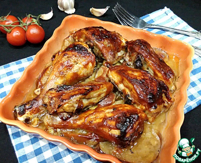 Использовала бедра и мед не стала класть. Картошечка, пропитанная соком курочки и соусом, потрясающе вкусная. Спасибо за рецепт