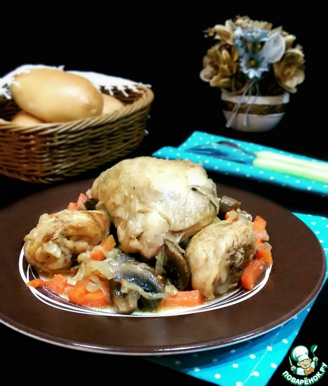 Курочка получается нежная, тает во рту. У меня без чернослива, не оказалось дома (хотя была уверенна что есть). Курочка и овощи выделили сок и получилась очень вкусная подливочка. Грибы - свежие шампиньоны. Тушила в своей мульте 45 минут, она у меня слабенькая. Спасибо за рецепт