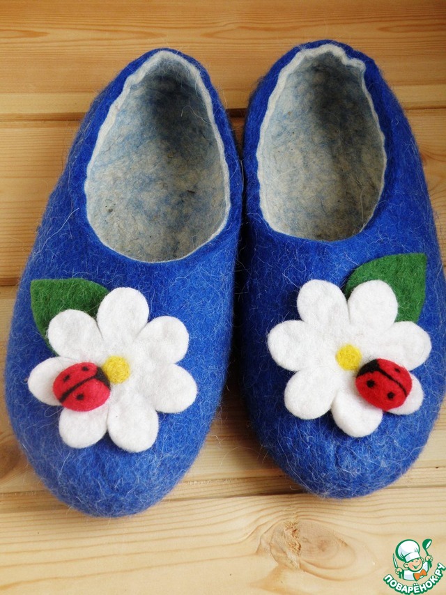 И еще подарочек, заботливо выбранный Викушей. Как раз для наших длинных холодных зим, уютные и натуральные тапочки ручной работы из войлока. Прелесть, до чего удобны!!!