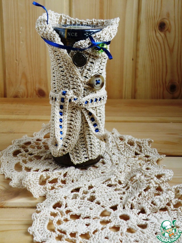 А вот этот подарок особо дорог! Он сделан руками моей золотой Викуши. Ее руки, ее время, ее душа, вложенная в эту красоту -это ведь бесценно! Элегантные салфеточки и - просто модель от кутюр - платье на баночку - изящество в каждой петельке! "Какая пряжа тебе больше нравится" - спросила меня Викуша. А я и подумать не могла, что будет так красиво!