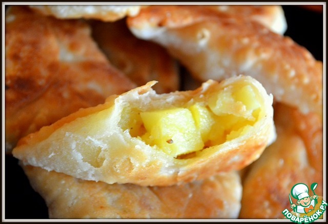 Давненько глазела на эти пирожки... уж больно зазывные фотографии у Наташи!.. И вот, решилась — а оказалось, что и подвига нет — простые они в приготовлении! Зря боялась, правильно Наташа говорила. Простые, но золотые!.. То есть, вкусные очень. И на первый раз всё равно не получилось так красиво «защипнуть» края, как у нашего Шефа... но не страшно. Вкуснецкие пирожки — самые вкусные пирожки с картошкой! Тесто отличное. Только вот начинка у меня без горошка. Не было его дома. Спасибо Наташе.