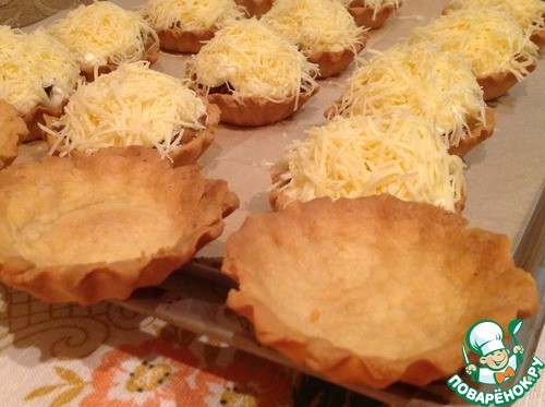Отличные тарталетки. Делала большие, под жульен. За несколько часов не размокли. Пекла за дней 5 до праздника. Отлично ведут себя в холодильнике. Получилось у меня штук 10-12.