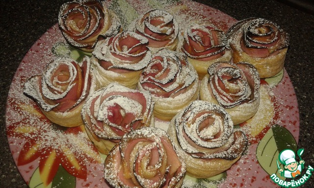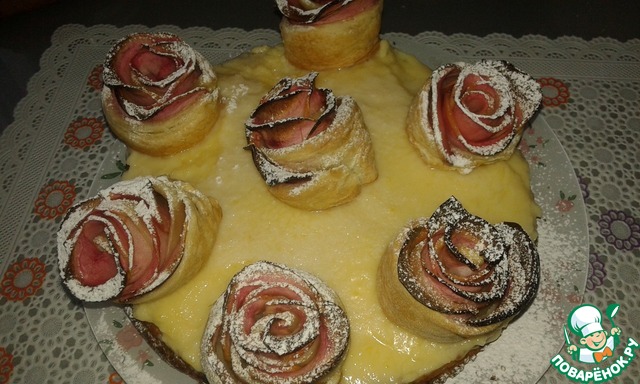 "Пирог "Миллион алых роз" по рецепту Юленьки https://www.povarenok.ru/recipes/show/138753/ Розочки получились конечно не такие яркие как у тебя Юленька, но праздничные, и поднимающие настроение окружающим!!! Замачивала в малиново-ежевичном настое. И пирог у меня тоже был, немного скомканый, но вкусный! А почему скомканный? Потому что крем сделала не как у тебя, а заварной, который совершенно не подошёл к пирогу! Ну чтож, на ошибках учимся!