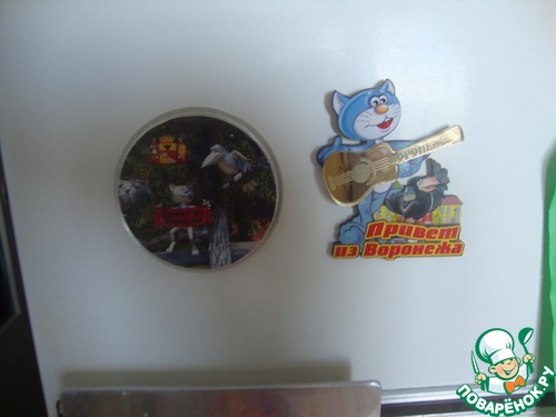 Ещё в посылке оказался симпатиШный котёнок, с улицы Лизюкова, с зеркальной гитарой, который занял достойное место с магнитиком из того же города...