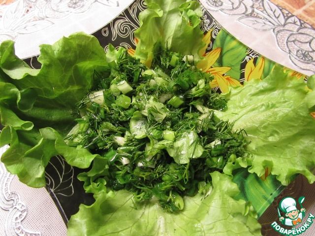 Салат из зелени с чесноком по рецепту Людочки Сурик https://www.povarenok.ru/recipes/show/137266/