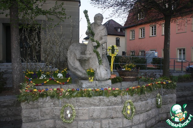 А вот так перед церковью украсили фонтанчик к Пасхе