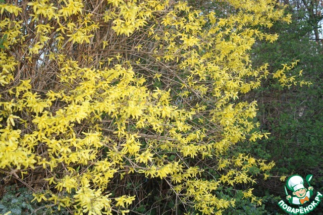 Красивая весна! Возможно, желтый куст - форзиция.