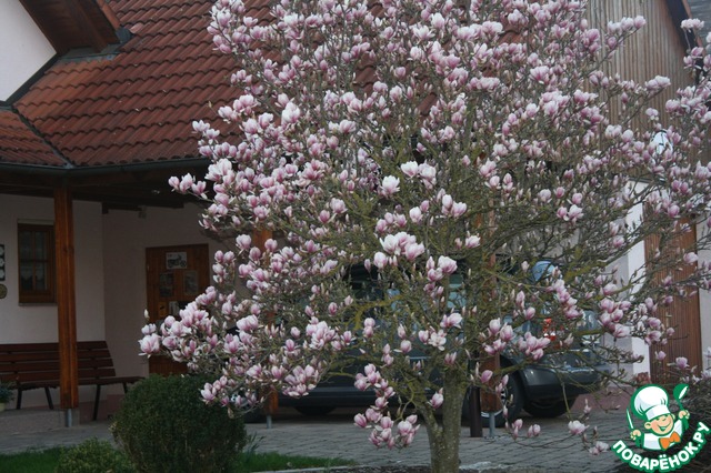 А это цветущая магнолия, ближе не стала подходить, и так частную собственность сфотала