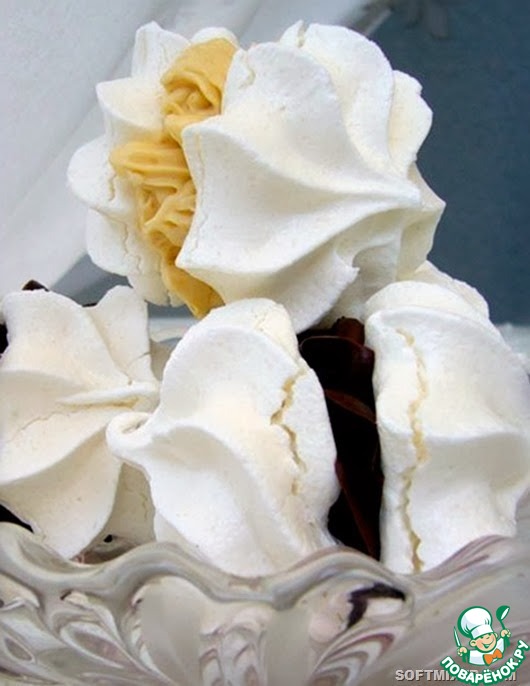 Белоснежное пирожное состоящее из двух половинок. Части белого хрустящего безе скреплялись между собой джемом или сливочным кремом. Любимое пирожное моей мамы, называемое ею немного иначе - меренга.