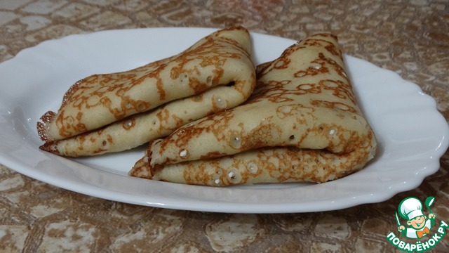 Прекрасные, с необычным вкусом блинчики. В нашей семье всем пришлись по вкусу! Буду периодически себя ими баловать!