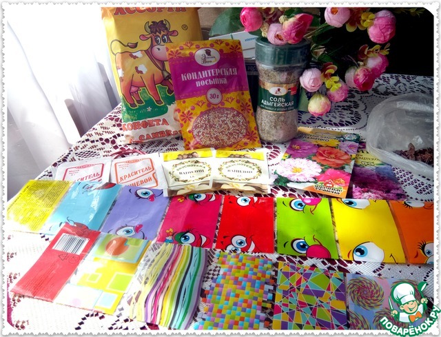 Иришка так поздравила меня с наступающей Пасхой! Перламутровая посыпка, звездочки бадьяна и ванилин для пасхальных куличей и пасхи, яркие смайлики для яиц и краски, большой пакет конфет "Коровка", да не простые, а ассорти с разными вкусами! Очень ароматная Адыгейская соль! Нежный букетик цветов, а так же семена, чтоб вырастила настоящие цветы! Спасибо огромное, очень неожиданно, и от этого вдвойне приятно!!!