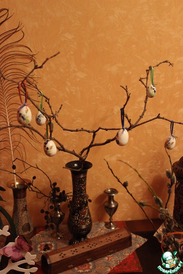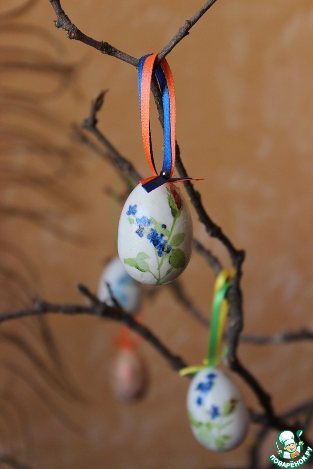 5. Веточка клена с пасхальными яйцами в технике декупаж.