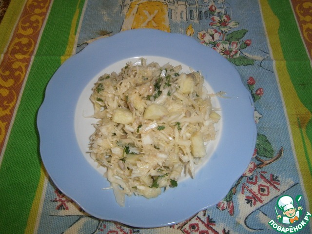Часто готовлю такой салат. В этот раз вместо моркови использовала капусту. Вкусно и витаминно.