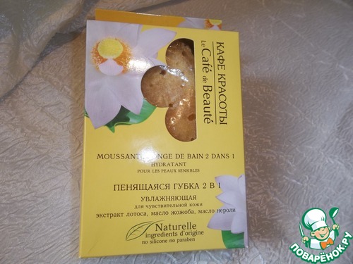 Вот это, интересная пенящаяся губка. Аромат обалденный. Её надо просто смочить водой.
