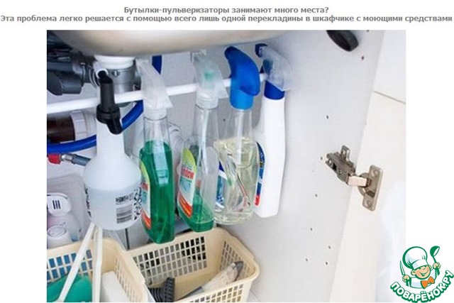 А вот как удобно можно хранить разные моющие средства в шкафу под мойкой.