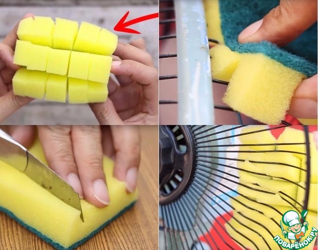2. Сделай несколько продольных и поперечных надрезов на губке, чтобы удалить пыль в труднодоступных местах.