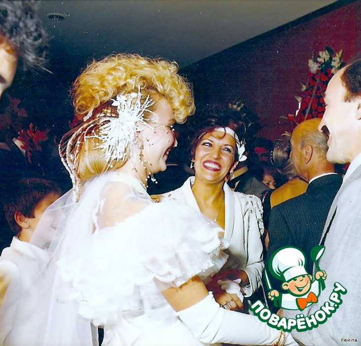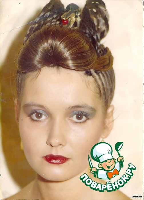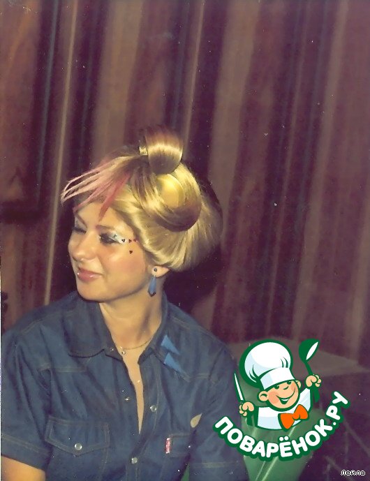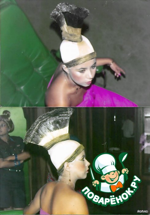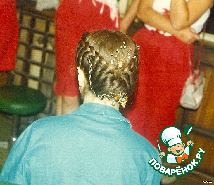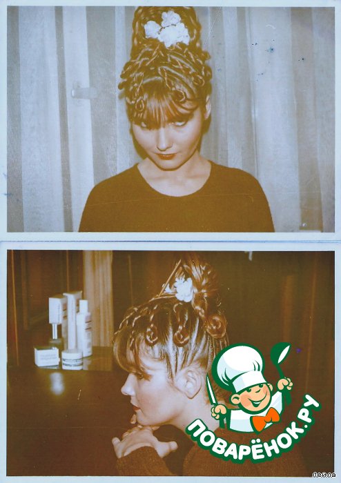-Здесь не знаю как будет видно,попытаюсь объяснить. То что Вы видите "МОСТ" это сделано из волос девочек,которые стоят в черных платьях.В свое время за эту прическу нагрядили автомашиной Халита.