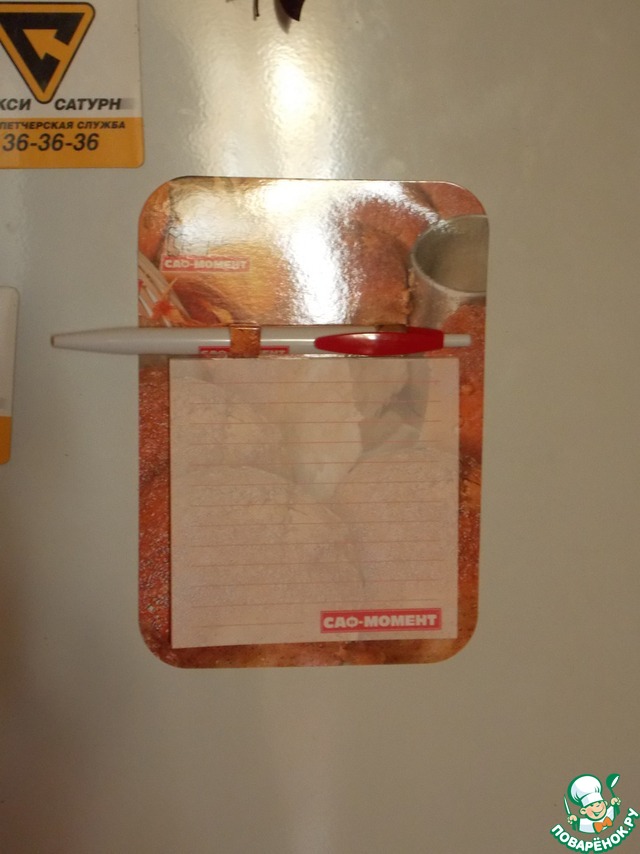 Отличный блокнот на магните с ручкой, который уже занял все место на холодильнике. Очень удобно.