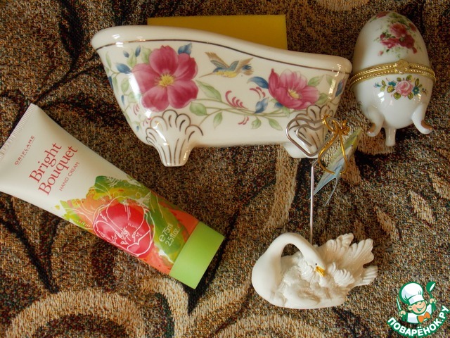 А это очень милые вещицы - фарфоровая ванночка для губки, Лебедь, Яйцо-шкатулка и кремушек для рук.
