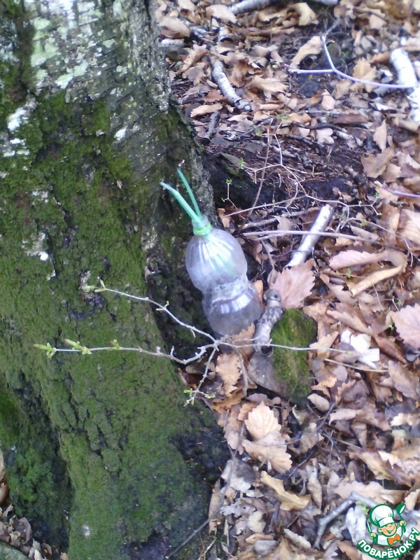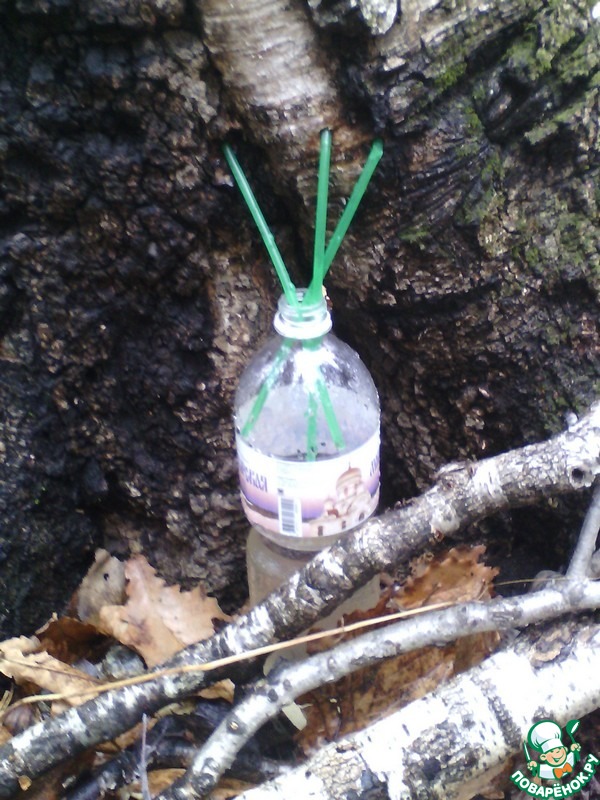 Дырки удобнее всего делать аккумуляторным шуруповером или дрелью. Но у меня их нет. Делал обычным большим гвоздём №120 (он диаметром, как пластиковая трубочка). Гвоздь вбивал на 0,5 см, вытаскивал... И так несколько раз, пока сок не потечёт. Сок идёт в поверхностных слоях древесины, сразу под корой. У меня берёзы старые с толстой корой. Дырки получились от 2 до 5 см глубиной. На какой высоте? Я ставлю бутылку на землю, а чуть выше неё дырки делаю. Говорят, что чем выше, тем сок слаще. Но я такой закономерности не заметил. Дырки потом замазываю пластилином.