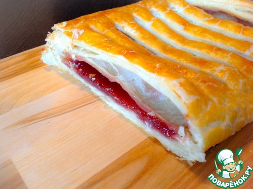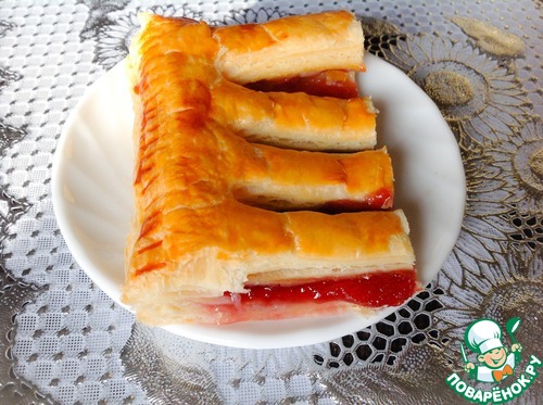 Если у вас по какой-то причине остался пласт слоёного теста или необходимо приготовить что-то быстро к чаю, рекомендую обратить внимание на этот пирог. Вкусно, просто, быстро! Начинка у меня из клюквенного джема.