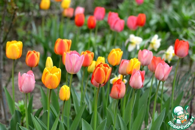 Иришенька, какие прекрасные милые тюльпаны у тебя! я очень люблю цветы, они реально поднимают настроение, особенно когда они цветут на земле. В букетах уже не та энергетика от них исходит.