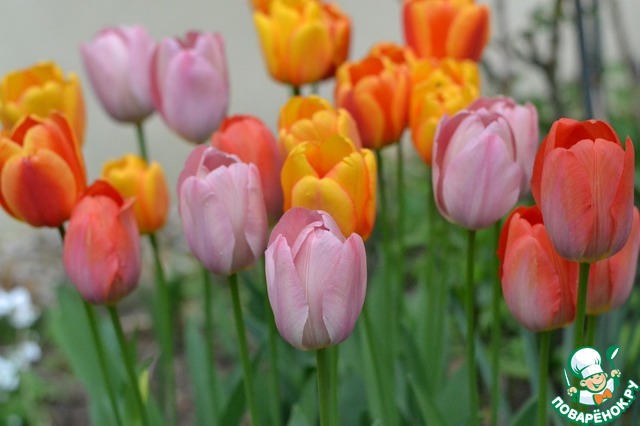 Пусть поспит! А я хочу показать Вам, дрогие мои Поварята, какие прекрасные тюльпаны расцвели у меня за окном!