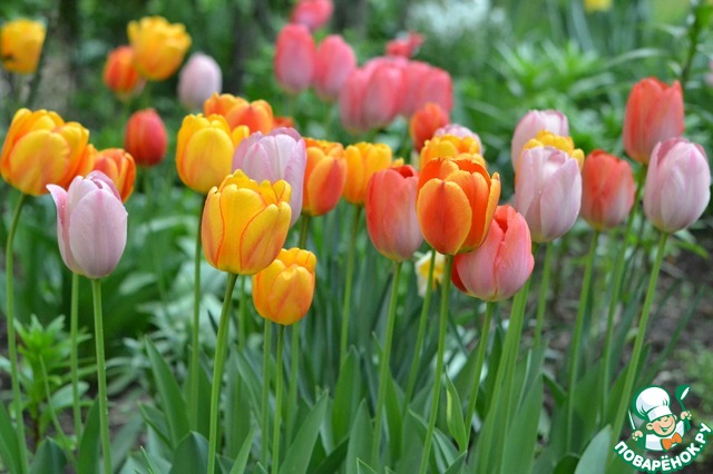 Спасибо за такие радостные тюльпанчики!!! А у нас целый день дождь идёт. Правда завтра обещают + 20 (сегодня +6). В некоторых местах тюльпаны пытаются расцвести, но они малюсенькие