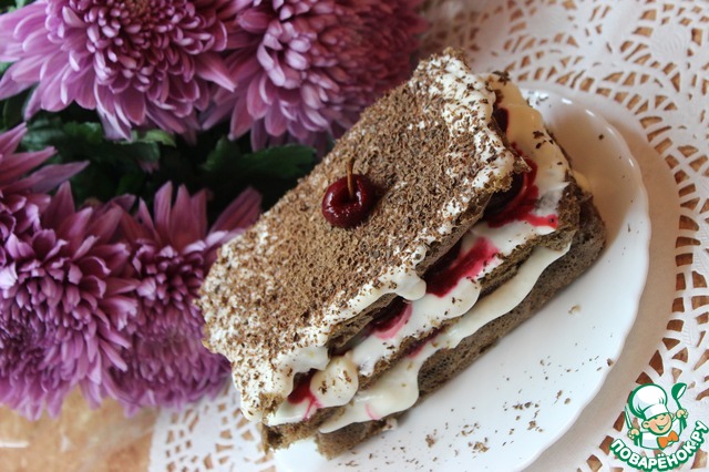 На все - приготовление теста, выпечка, приготовление крема, разморозка вишни и сборка тортика -