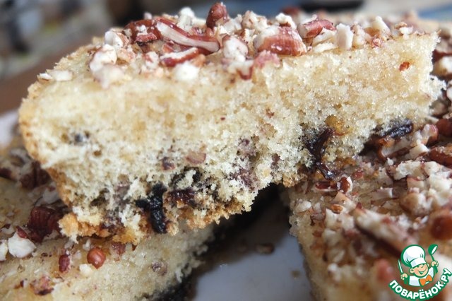 Простой пирог с черносливом и орехами Вкусный пушистый пирог! С глазурью накосячила, поэтому просто посыпала орешками.