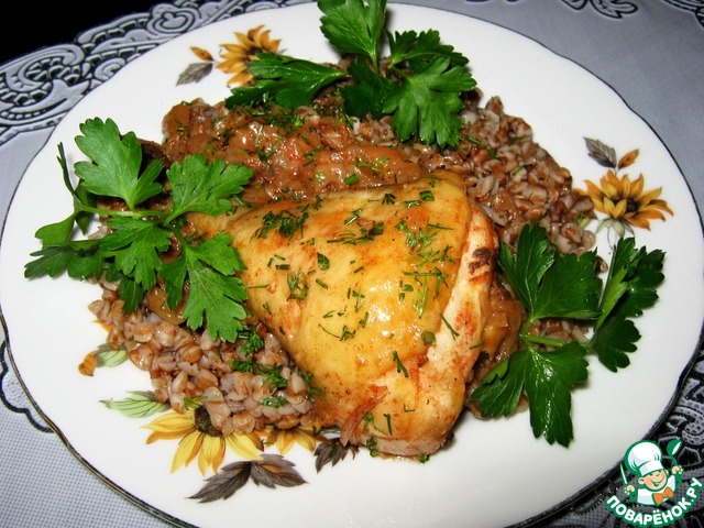 Быстро, нехлопотно и очень вкусно! Голени я тушила. На гарнир отварила гречку, полила подливкой с луком, украсила зеленью. Семья довольна! Вкусно!