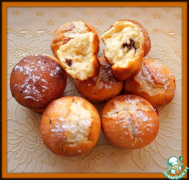 Американские маффины "Торжество вкуса и простоты" от кулинара vkusno_I_prosto. Очень вкусные маффины и очень быстро готовятся! У меня с начинкой из вишни и абрикосового джема.