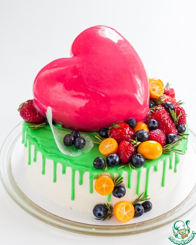 Шпинатный бисквит и йогуртовое сердце с клубничным компоте