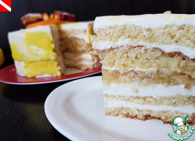 Внутри торт "Пина колада" с одного из мастер-классов, только там он был классический: