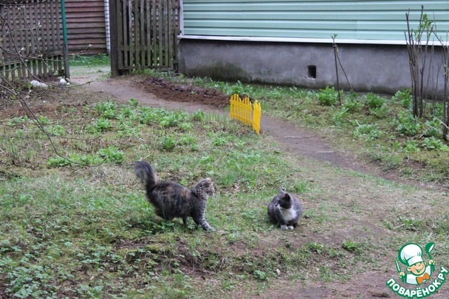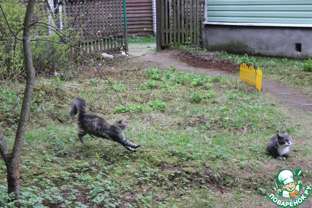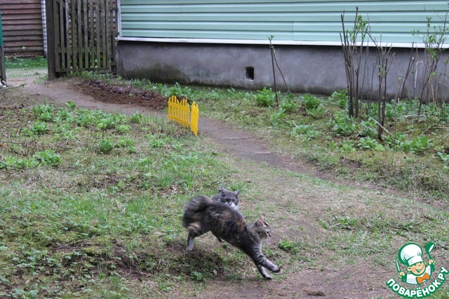 А еще ентот котейка работать не дает: постоянно пристает, падает перед тобой в клумбы и грядки
