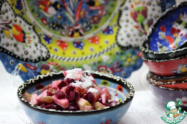 В этом салате сухофрукты очень гармонично сочетаются со свеклой! Я в восторге! Рекомендую.