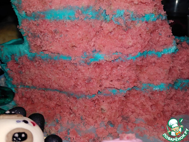получился чуть больше кг, внутри красный бархат, правда, с розовым красителем https://www.povarenok.ru/recipes/show/104802/