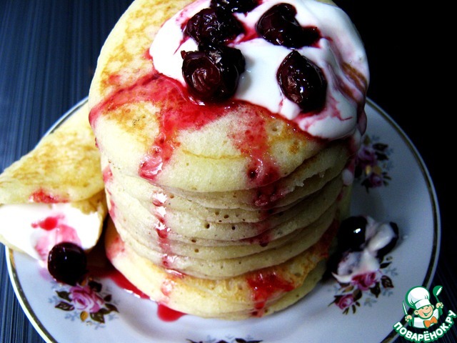 Блины получились восхитительные! Вкусные, нежные, воздушные! Подавала со сметанкой и вишнёвым соусом. Такая вкуснятина!!!