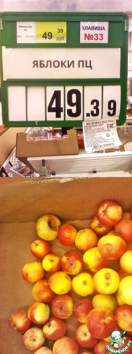 Недавно в одном из супермаркетов наткнулась на товар дня (см. выше на фото) Изумил не сам товар, гнилье можно найти в каждом супермаркете. Изумило, как точно смогли продавцы охарактеризовать свой товар. Это же самое слово просто вспыхнуло у меня в мозгу, когда я увидела сами "яблочки", и за какую цену этот "товар" еще и продают. Наверно, эти яблоки сразу выросли ПЦ, а чтобы в этом никто не сомневался и не задавал неприличных вопросов, администрация прицепила к ценнику этикетку с коробки.
