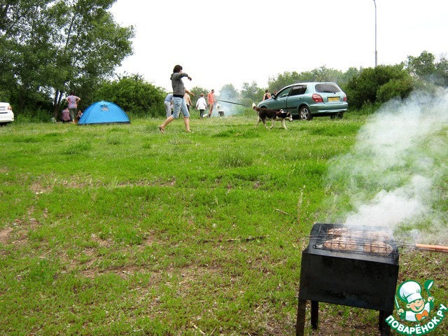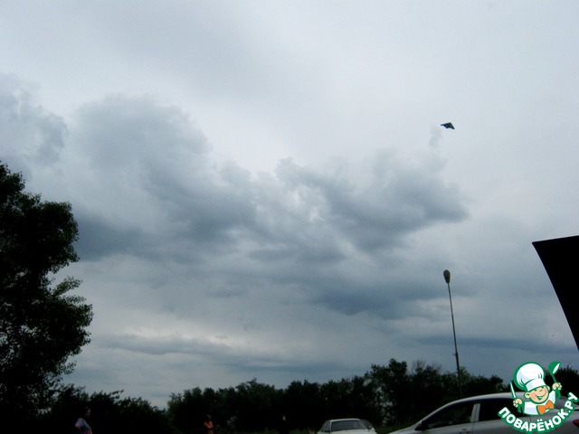 Парящий в воздухе воздушный змей... Хорошо отдохнули! Обалденно-вкусные шашлыки с маринованным лучком и зеленью. Чистый и свежий воздух.
