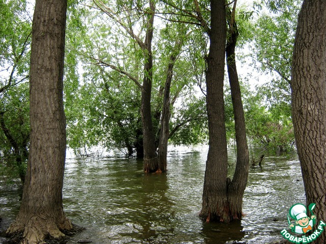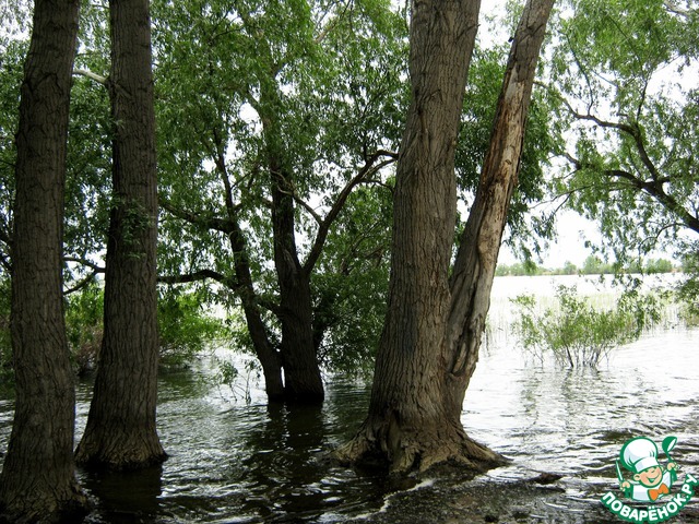 Весной был сильный паводок. Многие районы города были затоплены. На стволах деревьев остался виден уровень подъма воды.