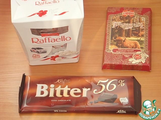 Потрясающий, очень вкусный Эстонский ШОКОЛАД BITTER 56% ТМ «KALEV». Отлично подходит для выпечки. Белорусский горький шоколад с начинкой из мармелада. Как же вкусно! Оба шоколада очень высокого качества. Любимые конфеты "Рафаэлло". Обожаем их!
