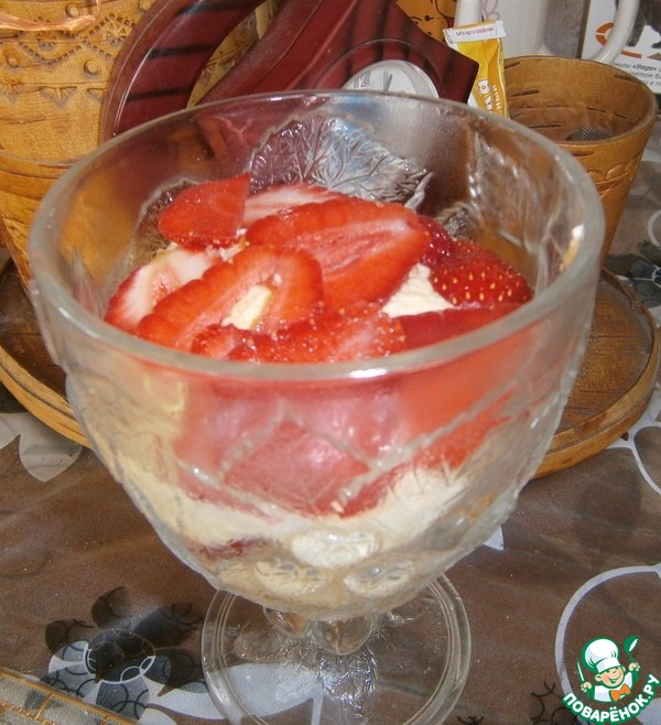 Получился очень вкусный, влажный, красивый торт. Добавила клубнику, крем - пломбир от Светланка g980 https://www.povarenok.ru/recipes/show/140251/. С ним еще готовила вот такой десерт
