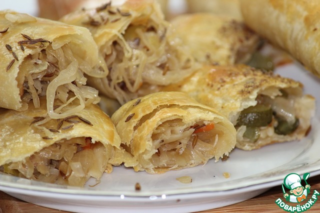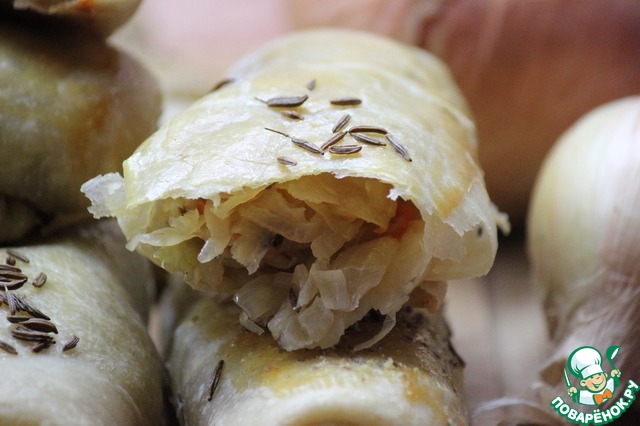 В качестве начинки также были тушеная квашеная капуста с тмином и маринованные огурчики с рисом и луком (самый приближенный к оригиналу