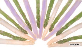 «Трехцветная» В продаже встречается спаржа зеленая, светло-фиолетовая и белая. Это один и тот же вид растения, выращенный при разном освещении. Зеленая спаржа растет на открытом солнце, белая растет под землей, а фиолетовой разрешено немного высунуть головку из земли.