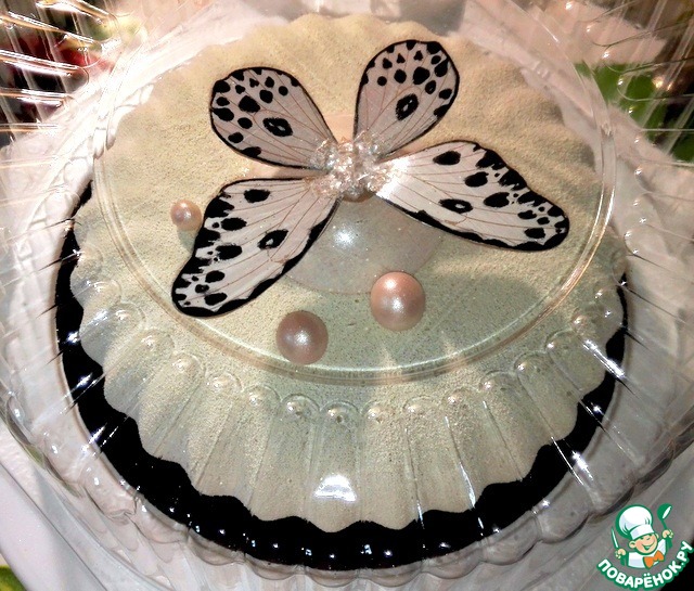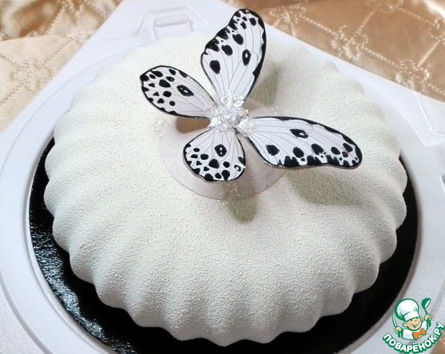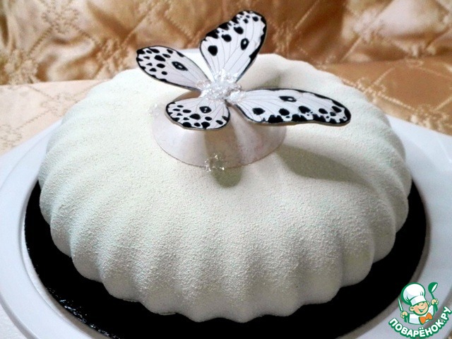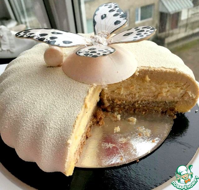 Торт кофейно - ореховый с карамелью. Покрыт белым велюром.
