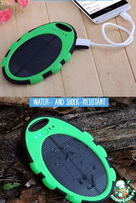 Портативное зарядное устройство, которое работает от энергии солнца и позволит зарядить телефон на пляже, на пикнике, в походе или в любом другом месте, где нет розетки.